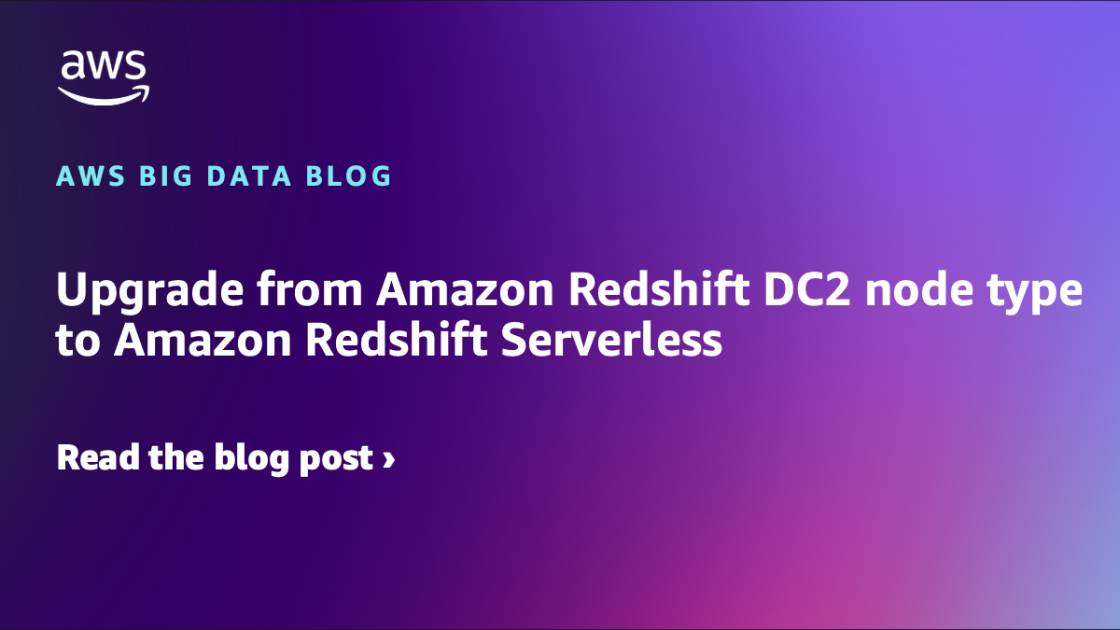 In this post, we show you the upgrade process from DC2 instances to Amazon Redshift Serverless. We’ll cover: