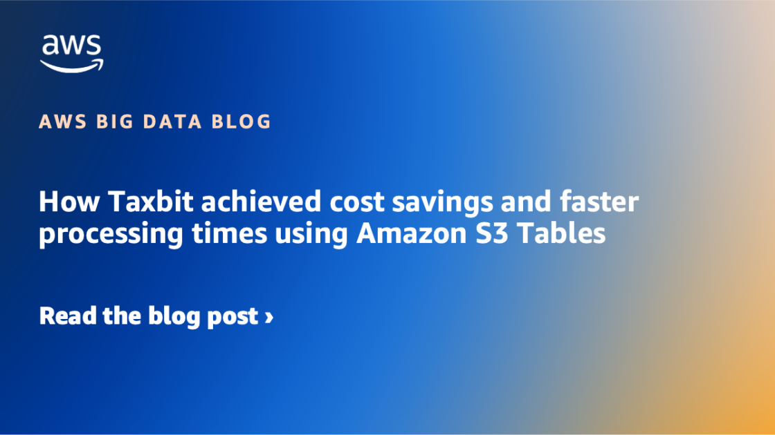 Taxbit’s implementation of Amazon S3 Tables has transformed their cryptocurrency tax compliance solutions, delivering 82% cost savings and five times faster processing speeds. The modernized architecture, combining Amazon EMR, AWS Glue, Amazon Kinesis, and Lambda, now processes transactions in minutes instead of hours. Additionally, the architecture has helped Taxbit maintain approximately 99.99% data accuracy across more than 10,000 digital assets. Beyond operational improvements, this transformation has enabled new product offerings and real-time analytics capabilities. By partnering with AWS, Taxbit addressed their scaling challenges and built a foundation for continued innovation in the digital asset space.