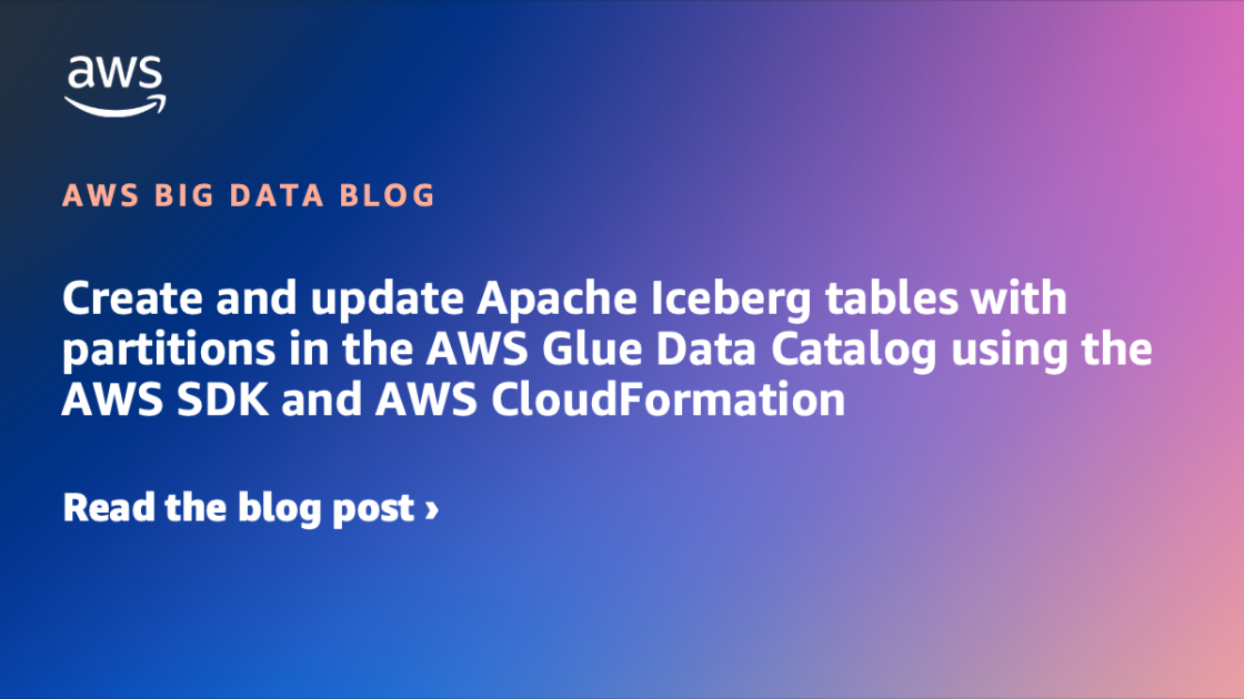In this post, we show how to create and update Iceberg tables with partitions in the Data Catalog using the AWS SDK and CloudFormation.