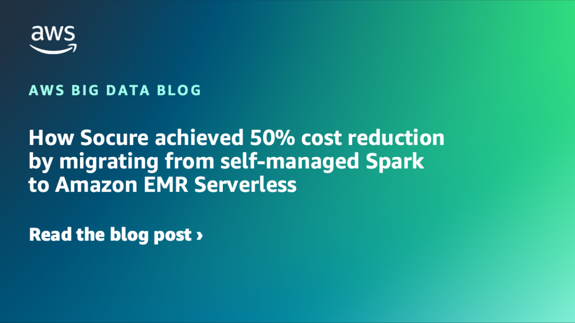 In this post, we showed how Socure transitioning to EMR Serverless not only resolved critical issues around cost, reliability, and latency, but also provided a more scalable and sustainable architecture for serving customer POCs effectively, enabling us to deliver results to customers faster and strengthen our position for potential custom contracts.